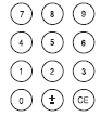 使用鍵盤輸入數字運行參數,輸入或調出程序編號及選擇加速和/ 或減率。除 0 鍵到 9 鍵位外,鍵盤還包括加/ 減鍵和一個 CE 鍵(清除鍵)。按下 ± 設置溫度低于 0°C(例如, – 2°C)。