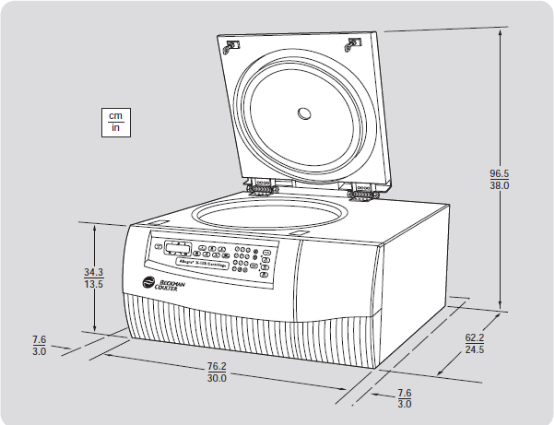 3.在離心機側邊及后方留出 7.6-cm (3- 英寸)的間隙以確保通風良好
